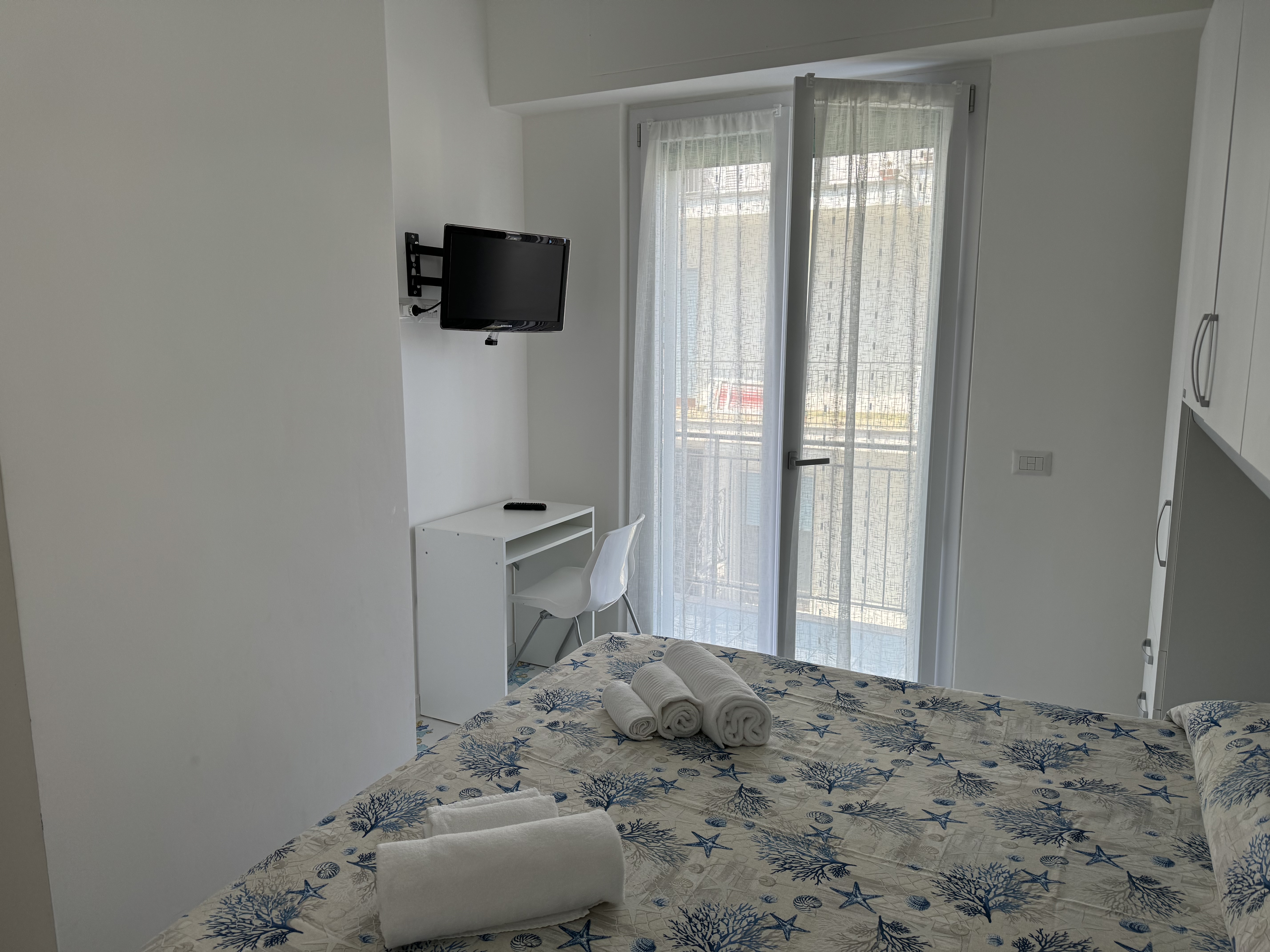 L’appartamento è dotato dei migliori confort: wi-fi, aria condizionata, cucina a induzione, balcone vista mare, macchina per il caffè a cialde, lavatrice, biancheria e lenzuola.